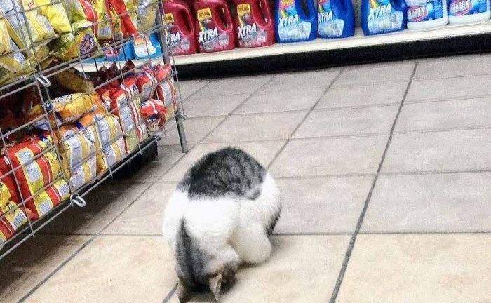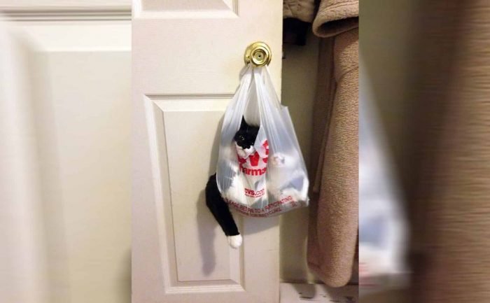 #9 What on earth is going on here? How did she even reached the plastic bag. man cats are funny