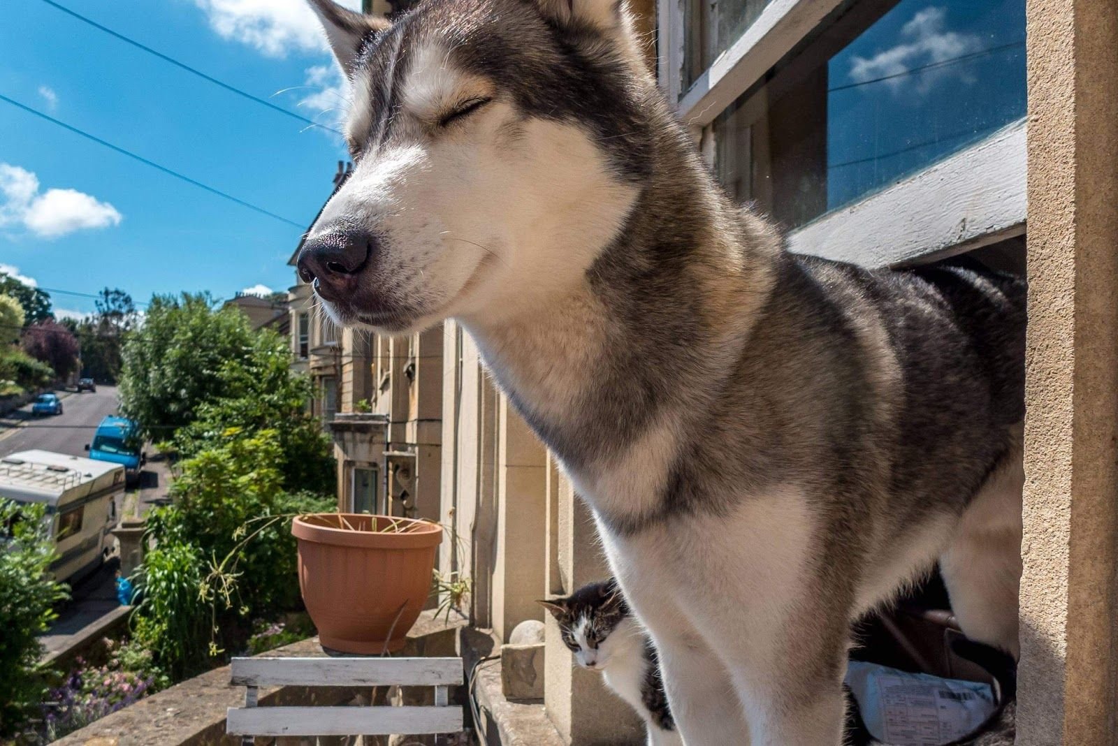 You have probably encountered this view many times. Your Husky watching and judging from the balcony. For me, this material is very hilarious. I hope it will be for you too.