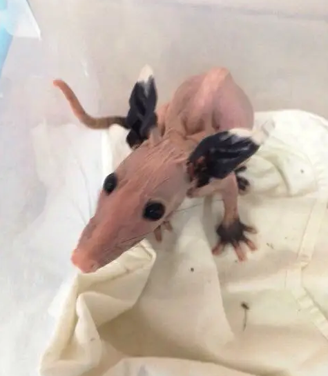 #10 This is a hairless rat with black ears. Interesting!