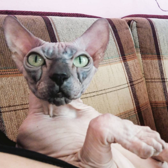 #3 Meet the grumpiest cat, who happens to be hairless as well.