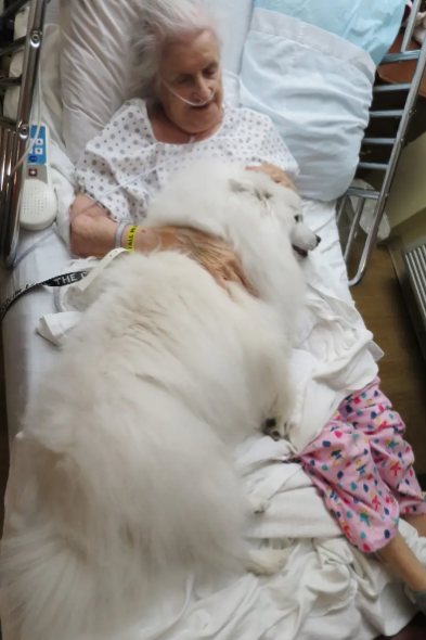 #5 Once again we are shown that the devotion of a dog towards his human goes way and beyond. This dog here is comforting his adoptive mother who’s on a hospital bed.