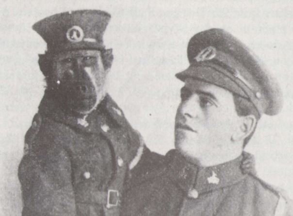 Jackie the baboon was the pet of a South African volunteer. He quickly became a mascot for the troops and a huge boost of morale. In 1918, Jackie lost his right leg, therefore he was forced to live the rest of his life peacefully.
