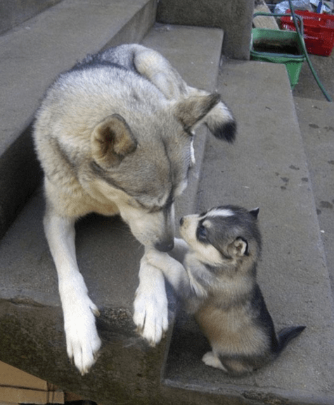 #5 How precious is this?…Although the pup is so tiny you can tell he has the same colors and lines on his fur as the big one.