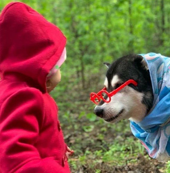 5- Little Red Riding Hood and Malamute in the forest.