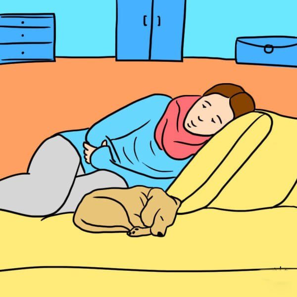 #8 Having your pup curling on your stomach while you are laid down and trying to rest, helps soothe chronic body pain. This must be a pretty big news for the ones that suffer from sore and an achy body all the time.