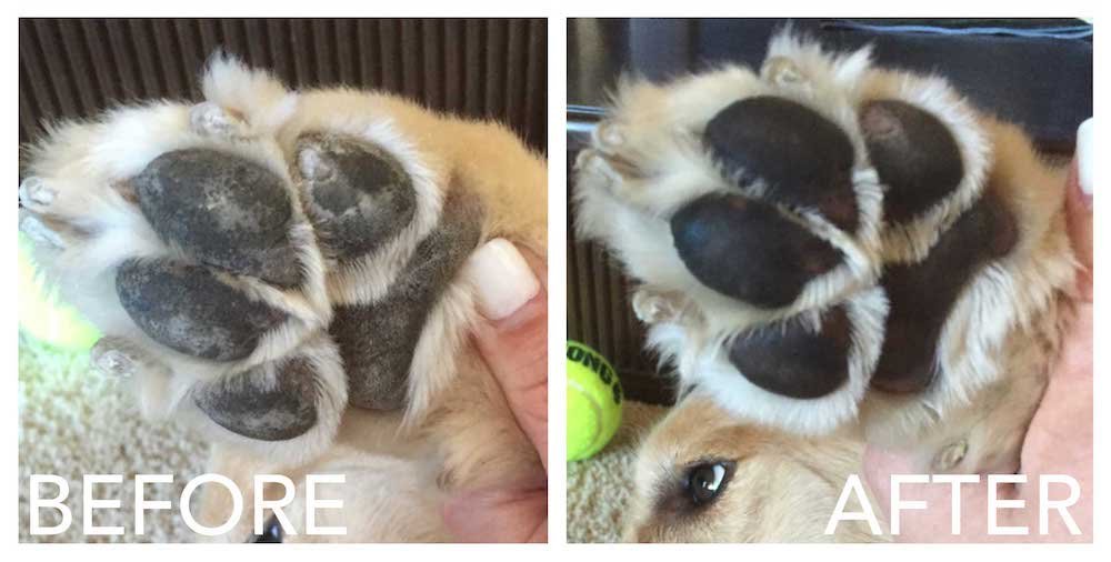 You know how our hands tend to be dry sometimes? Well the same happens with dogs. Their paws can be dry and stiff.