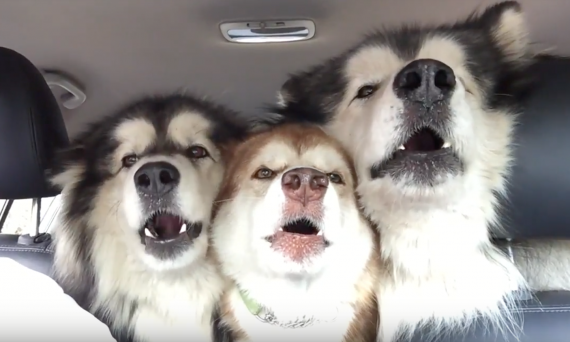 The Alaskan Malamute is one of the most talkative and expressive breeds out there. And for a family with three of them, let’s just say things can get a little noisy! In the video below, the dogs are going on a car ride to get groomed when they bust out in song.