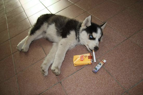 #5 Cigarette smoke- Dogs can experience allergy symptoms such as itchy, inflamed skin from the second hand smoking or residual toxins left on unwashed hands. So make sure to smoke far way from your pup if you care about him that much and also wash the hands thoroughly after.