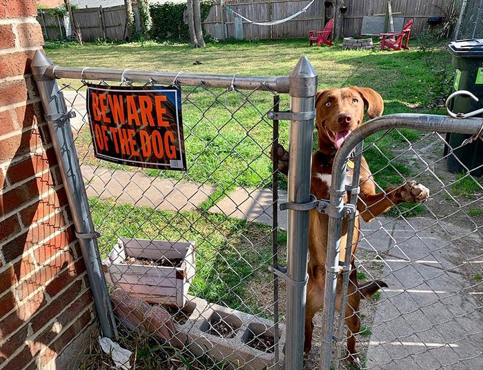 Dogs can serve as the perfect hosts, greeting whoever they see with a wagging tail and exuberant licks — however, there are times in which they are required to do the exact opposite and act as guard dogs. To prevent any unwanted strangers from turning up, owners often display the ‘BEWARE OF DOG’ sign to let people know that they better keep moving.