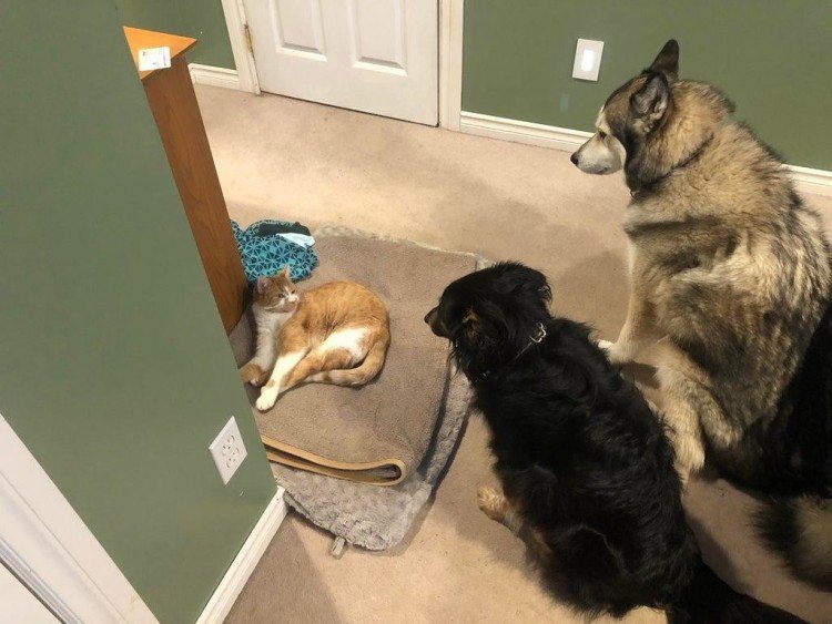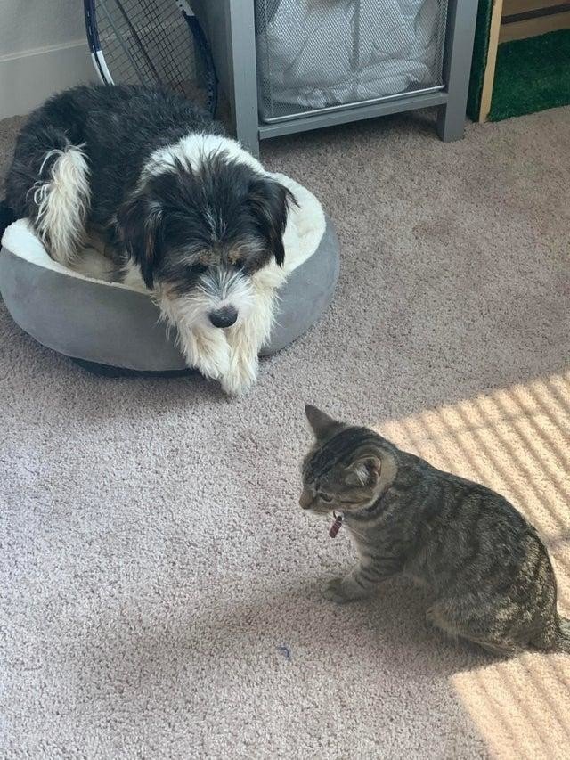 Dogs that are resigned with their position in the house. Although cats and dogs are known to be sworn enemies, the truth is quite different. Coexistence between them is possible, and nothing to worry about. Even if there are moments of fight between your pets, trust me after a while they will get used to each other.