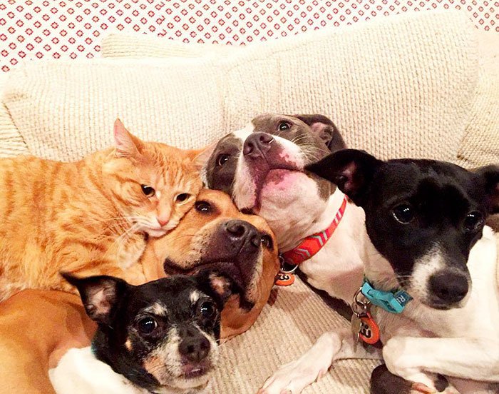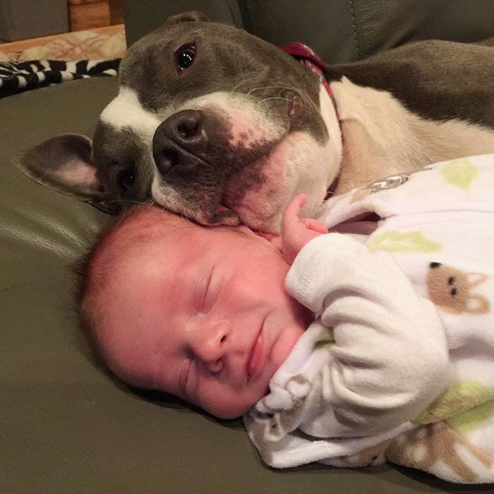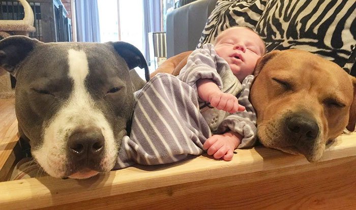 All their pets are adopted and when the baby boy arrived all of them reacted in the best way possible.