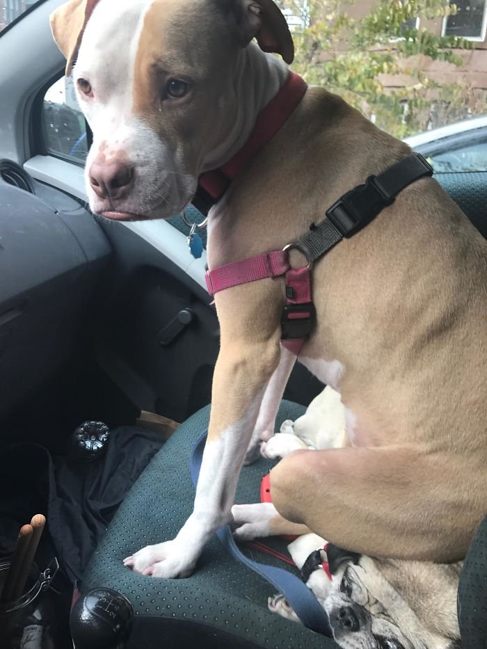 #3 I know you love me big guy, but I am starting to feel suffocated.Dogs Dealing With Their Crazy Siblings