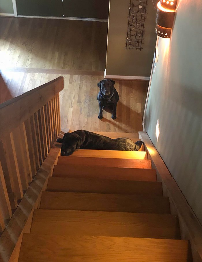 #6 You don’t get to climb up stairs just because I say so!dog brother and sisters