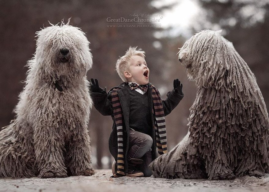 The photos taken for this article were shot for an album named “Little Kids And Their Big Dogs”. A photographer captured thousands of photos to narrow them down to less than a hundred selecting the best shots.