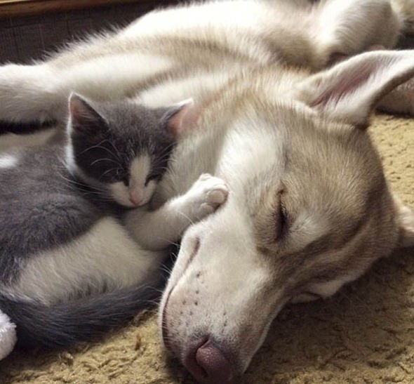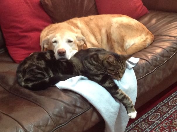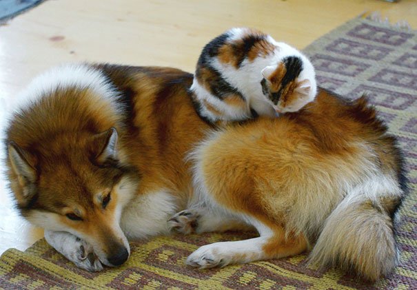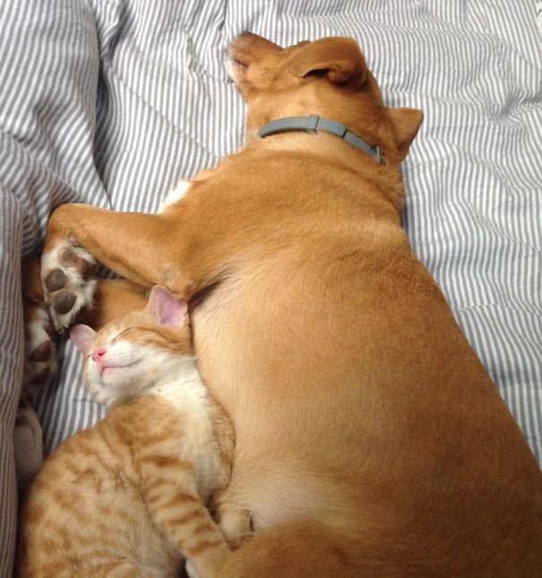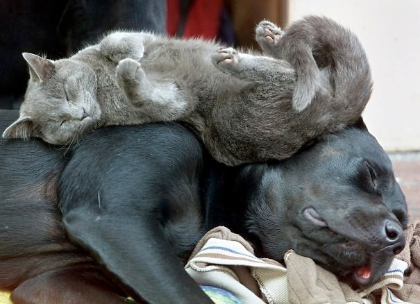 #20 Photos Of Cats Sleeping On Dogs That Will Melt Your Heart