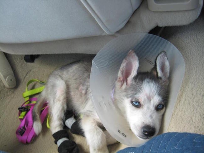 After a couple of weeks with the Foster Family the Husky Puppies are doing very well! They are eating regularly, do not look scared anymore, and love to take long walks with their foster mother!