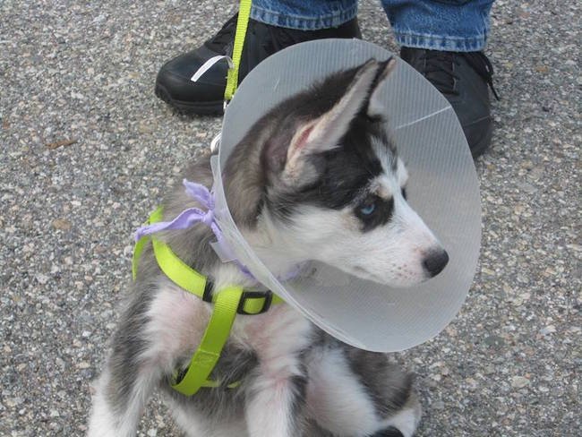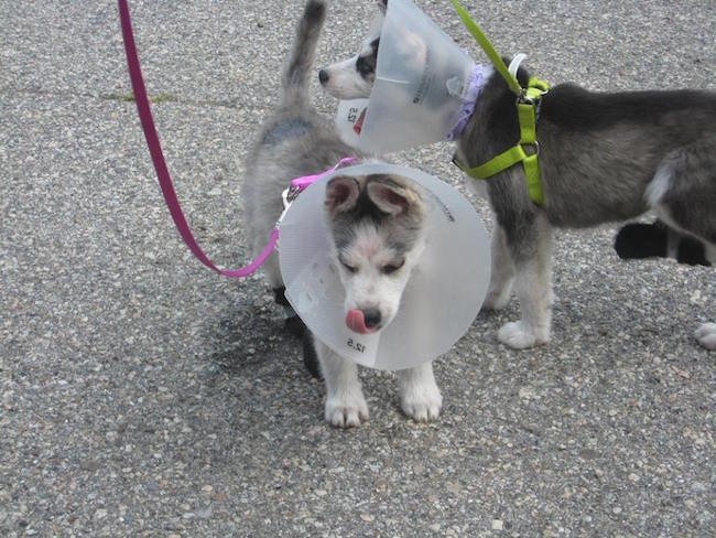 After a couple of weeks with the Foster Family the Husky Puppies are doing very well! They are eating regularly, do not look scared anymore, and love to take long walks with their foster mother!