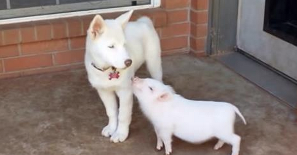 In this video you will see husky puppies (one gray and the other white), having fun with their cohabiting friend, baby pig. With their childish games they offer a wonderful display to our eyes. I invite you to pay close attention to this beautiful relationship of theirs. Looks like these three are inseparable. They play together all the time. Sharing their environment, toys, and space. Just as regular roomies. What do you guys think?