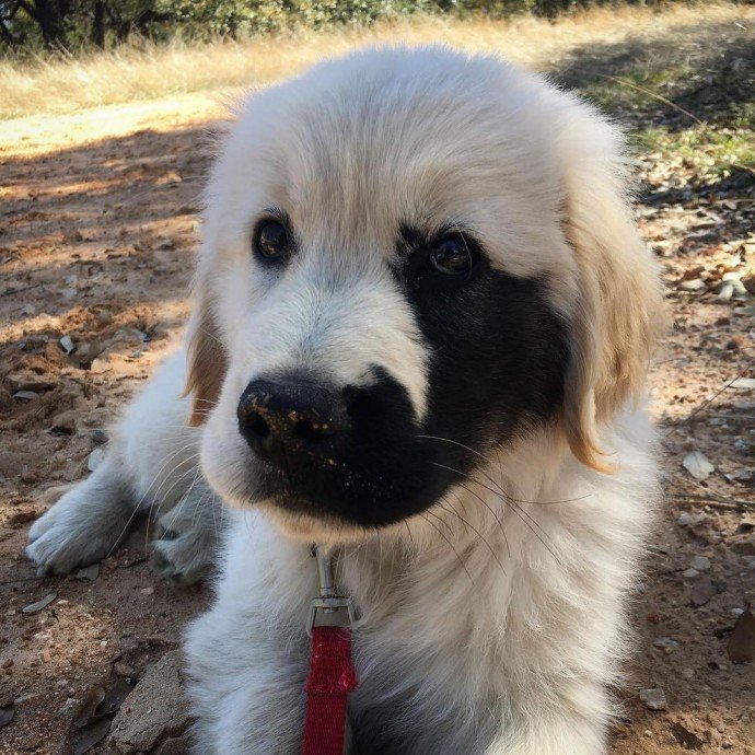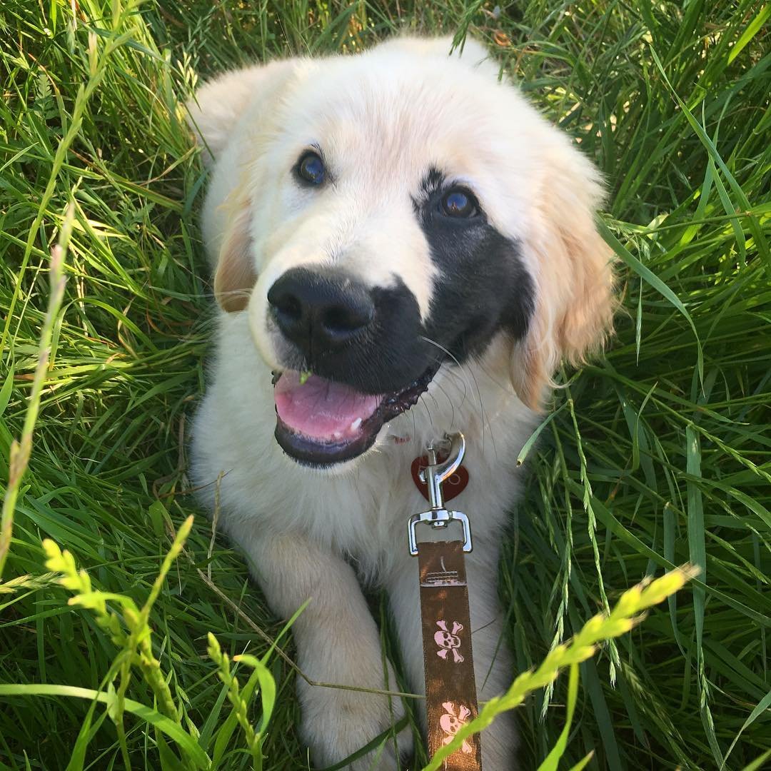 Despite being a purebred Golden Retriever, a breed that typically sports a single golden coat, Enzo was born with a large black splotch around his eye, which almost completely covers the left side of his face. The beautiful beauty mark is caused by a rare disorder called pigmented somatic cell mutation.