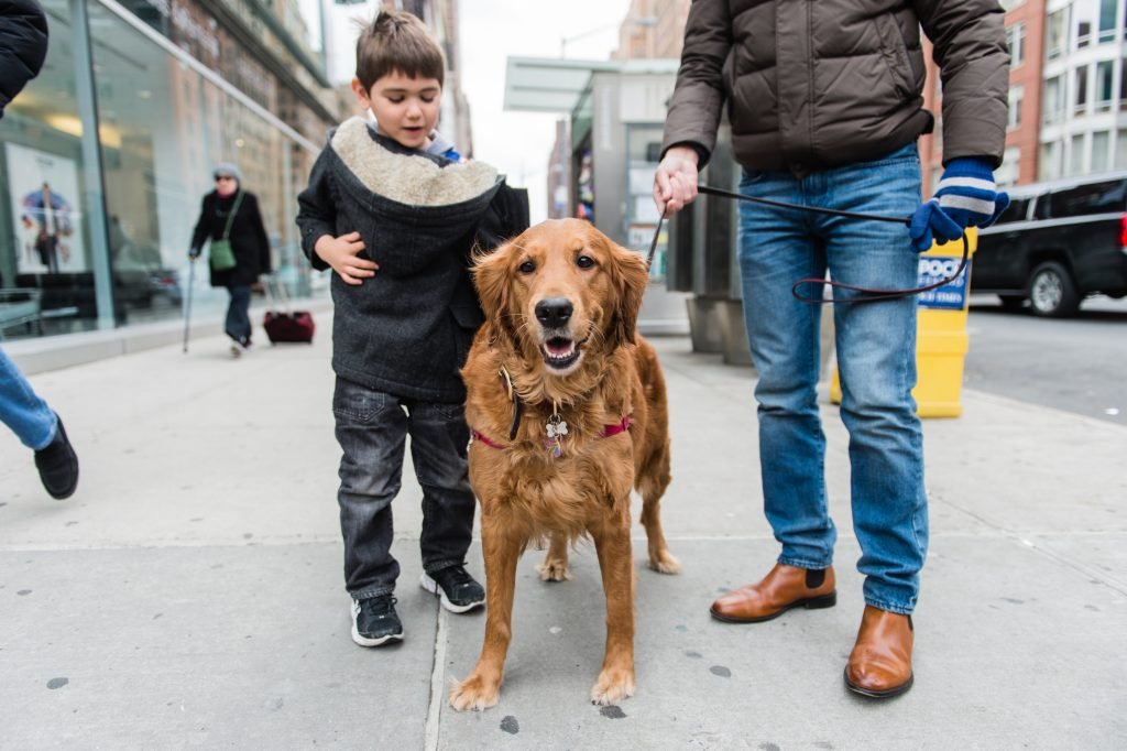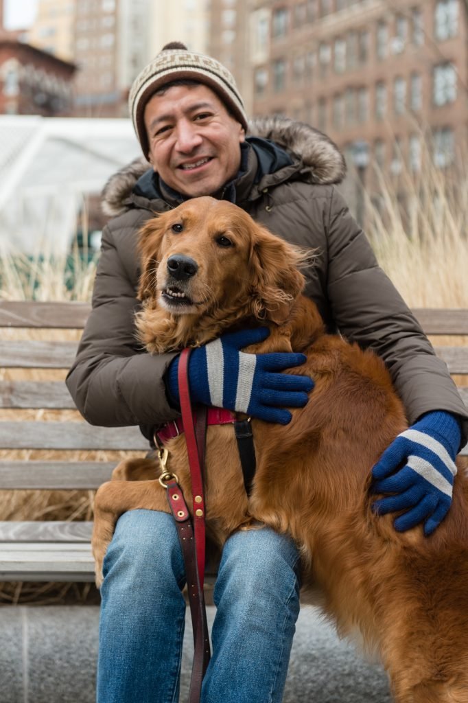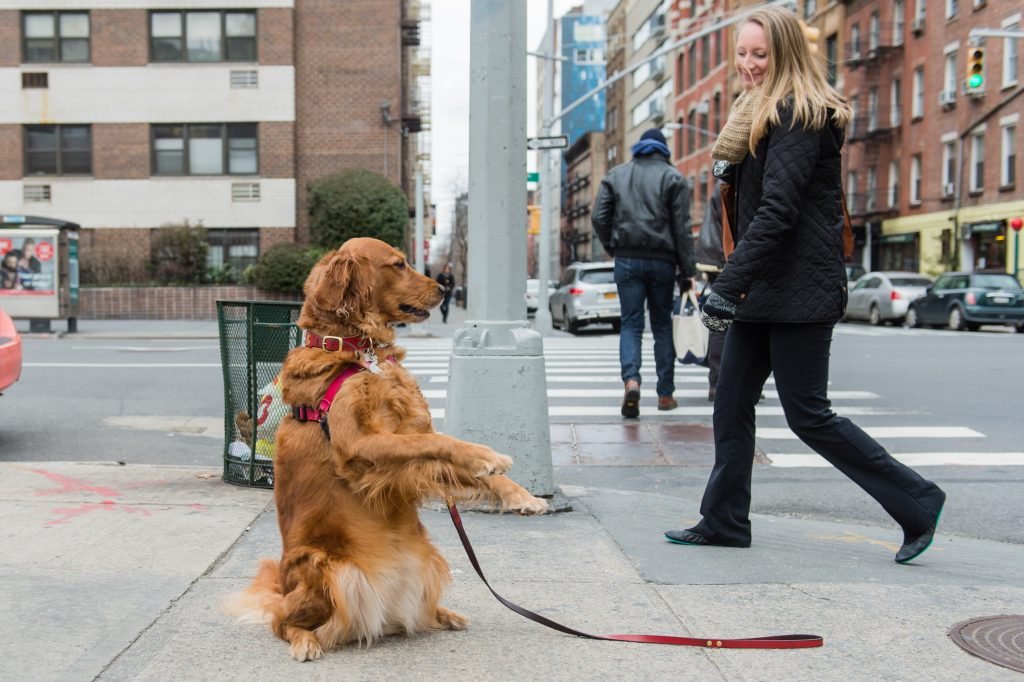 The Golden Retriever lives with her owner that works as a Spanish translator at a hospital in Chelsea. First she could only hold hands with her owner.