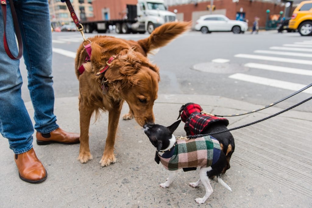 Even those who are in hurry, can not help but stop and receive the offered hug from the dog. Is just to sweet, plus is something that is not seen every day.
