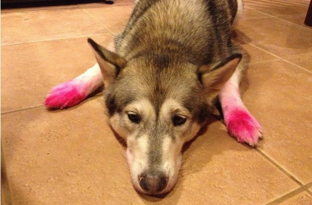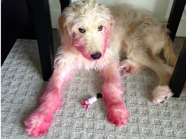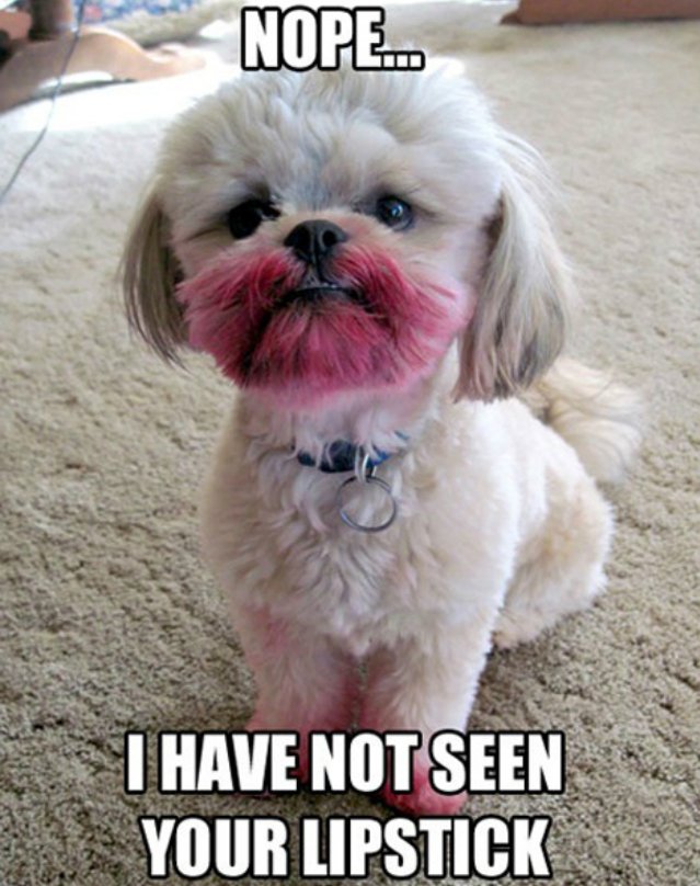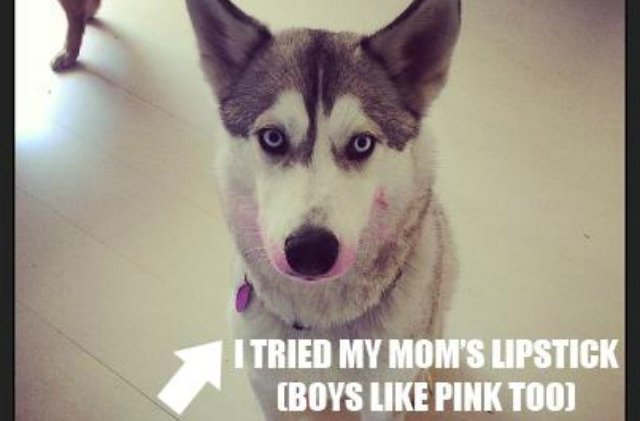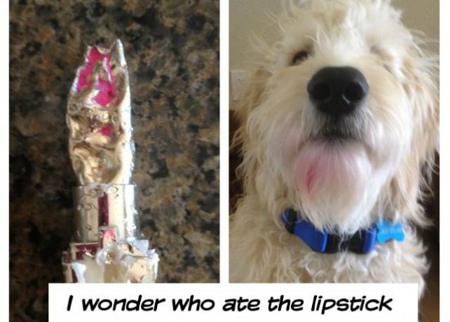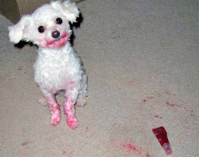 Funny photos of dogs who hilariously fail at using makeup.