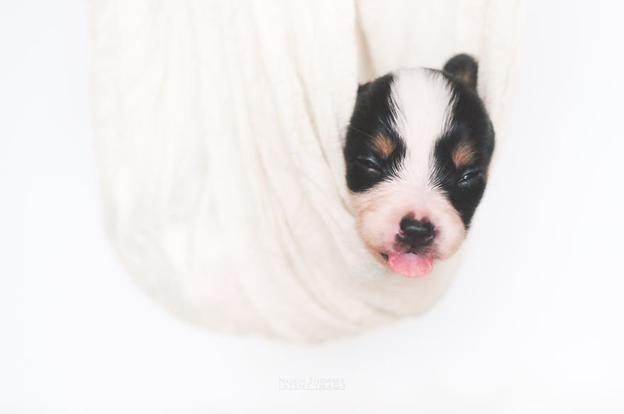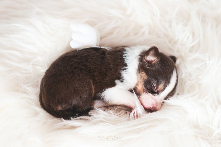 Puppies have the same effect on us as newborn babies. They are beautiful, adorable and the most pure creature on earth. A photographer had the idea to capture new born puppies with little angel wings on their backs. For the photoshoot she selected border collie new born puppies and the results are divine.