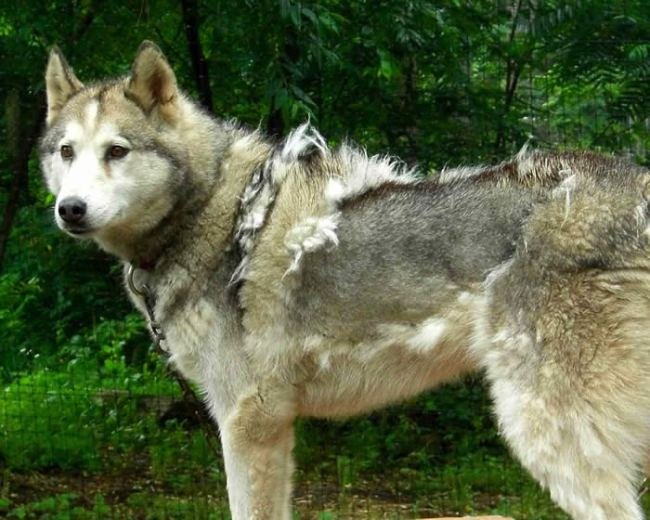 Older dogs have problems with proper regrowth of the coat, in other cases (most often) the undercoat grows in faster than the topcoat (since the topcoat isn’t meant to shed extensively it grows extremely slowly) so now that protective topcoat is matted into the undercoat.