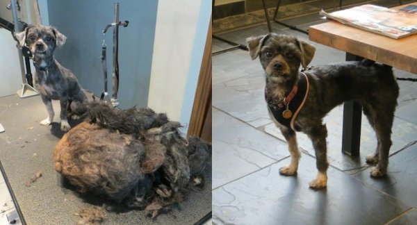 So, his rescuers rushed to shave off the nasty, matted hair.