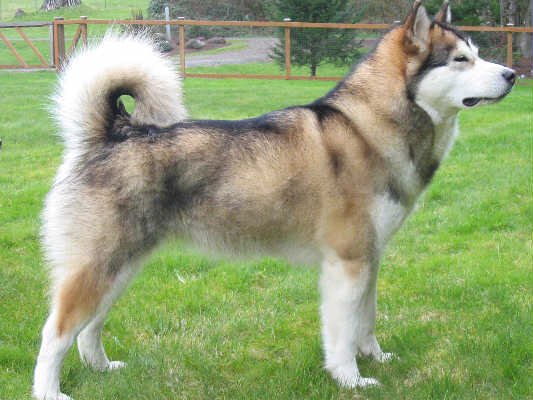 The guard hair is banded with a reddish cast near the root with black tipping. Undercoat is reddish-copper. Always accompanied by black points; this color gives the dog a reddish cast and is not to be confused with wolf gray.