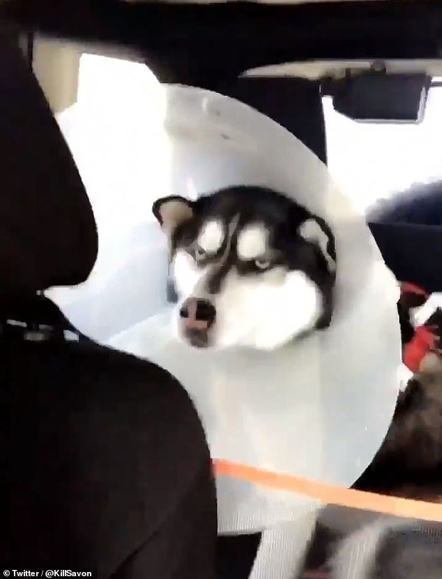 This adorable husky had to spend the entire day at the veterinarian, and he wasn’t afraid to show his owner that he was not happy about it.