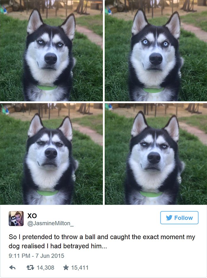 This dog owner decided to play a fake game with Anuko, his Husky dog.. He reported that he pretended to throw the ball for his Siberian Husky, and captured the face expressions of his beloved big boy. Look at his reaction in the following pictures!