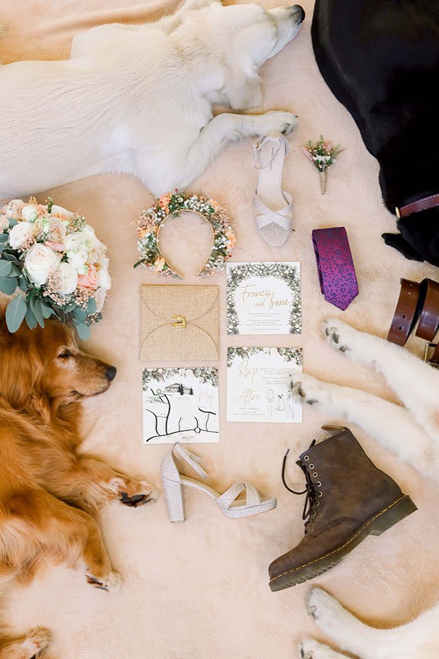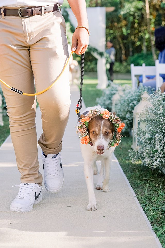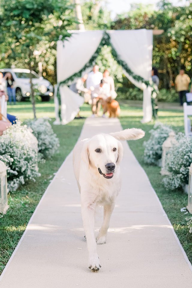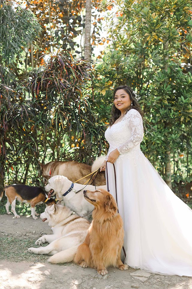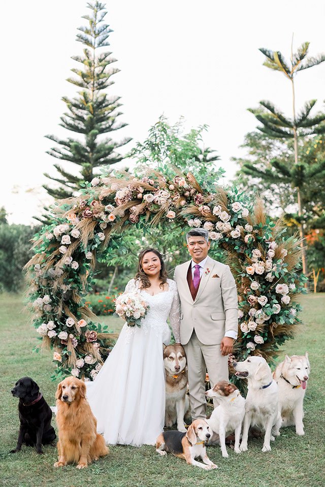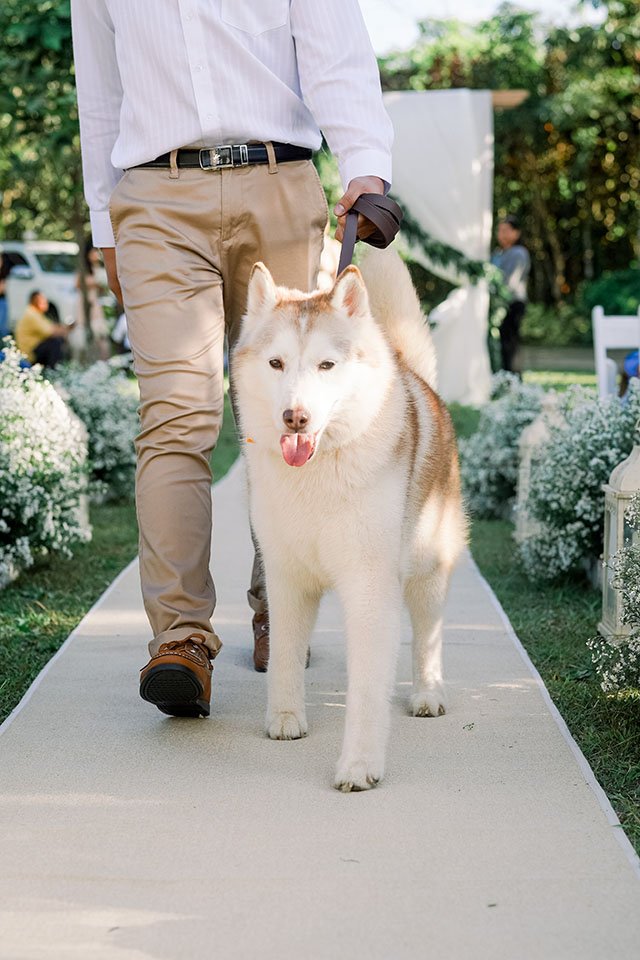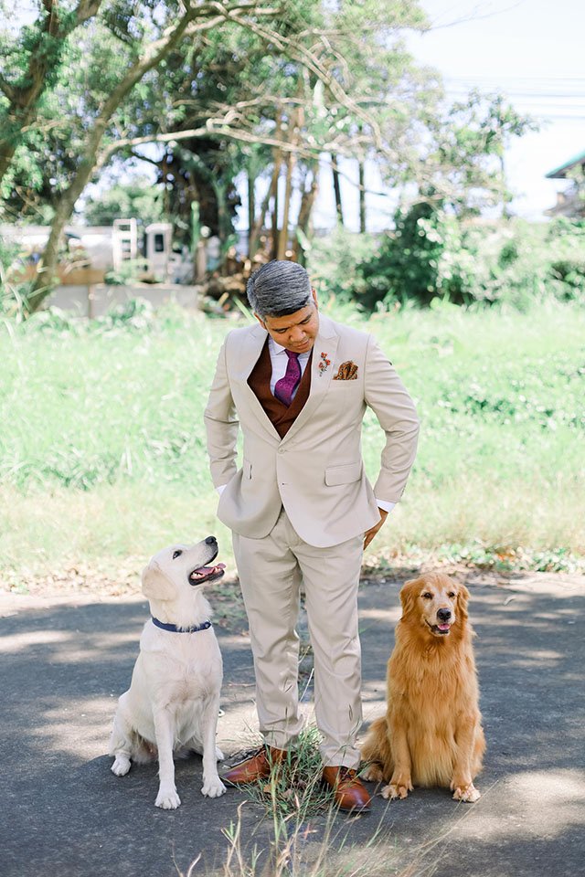 Each dog was given a special responsibility. Alaskan malamute Stark acted as the ring bearer, golden retrievers Serena and Stella did their parts as flower girls. The rest Skit, Sugar, Kyuubi, and Sophie joined the groomsmen and bridesmaids to complete the entourage. Just lovely.