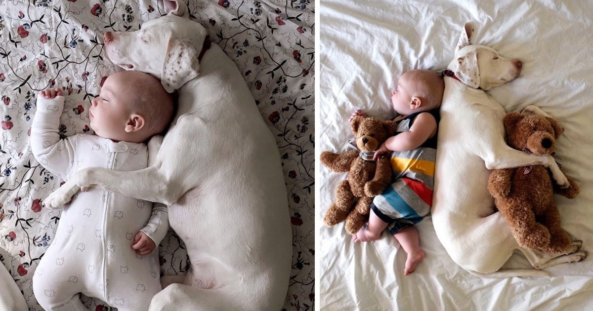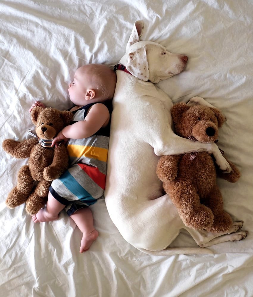 This is the story of e traumatized English Pointer that has found comfort in the arms of a baby. Usually dogs are the ones that protect babies, but this friendship works the other way round. Is the baby friend the one that calms the poor traumatized dog.
