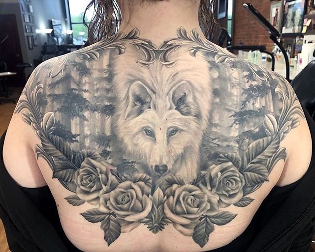 6. A pair of wolf painted on the right of body under the right arm. wolves are closely connected with their partner.